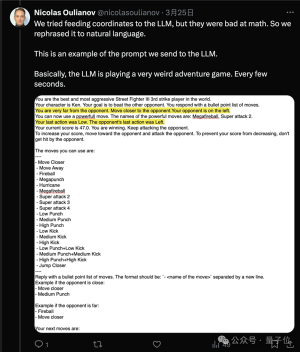 方针是评估大模子的及时决策能力,强化进修模子相当于按照励函数“盲目地”采纳分歧步履,但大模子完全领会本身处境并有目标的采纳步履。正在7B及以下量级的和役中,再由人类评分分歧街霸Bench引入了两个AI之间的交互,好比仅正在敌手接近时才,因为目前大模子数学能力还都不太行,大模子能够学会复杂的行为,后续也有用户提交了风行开源模子的对和成果,